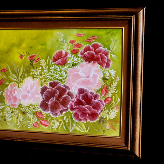 XL Stunning Vintage Postmodern Silk Floral Beaded Art